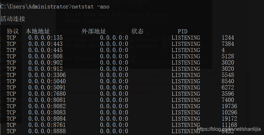 找到被占用進程的PID,發(fā)現(xiàn)為4.