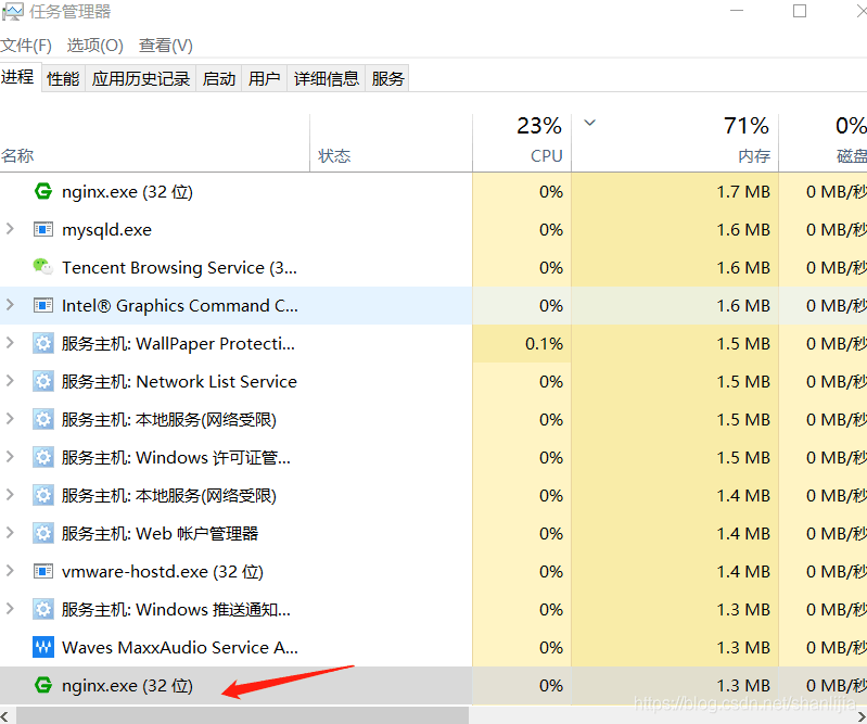 點擊nginx.exe,未在任務(wù)管理器中找到,不能成功啟動