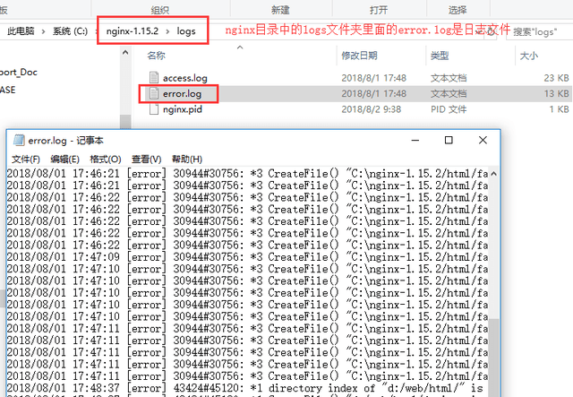 如果都沒有可能是啟動報錯了查看一下日志,在nginx目錄中的logs文件夾下error.log是日志文件