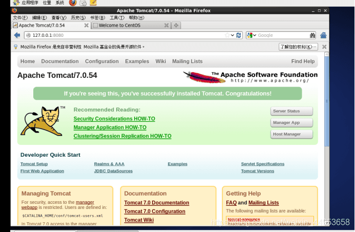[root@localhost ~]# tar xvf apache-tomcat-7.0.54.tar.gz [root@localhost ~]# mv apache-tomcat-7.0.54 /usr/local/tomcat [root@localhost ~]# /usr/local/tomcat/bin/startup.sh //啟動(dòng)Tomcat程序3.搭建成功實(shí)例