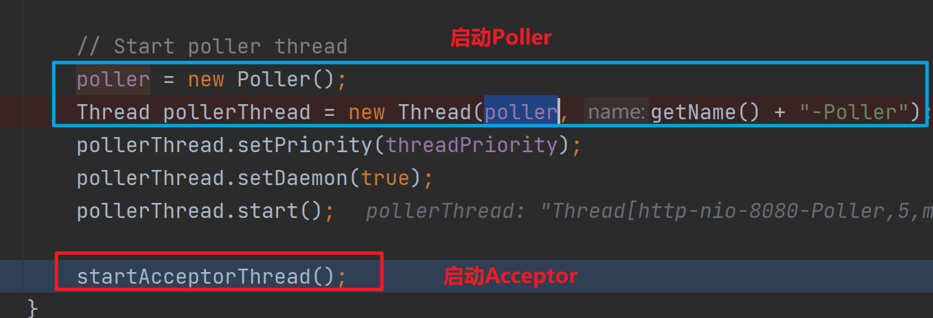 NioEndpoint#start方法最后會觸發Poller線程和Acceptor線程的啟動