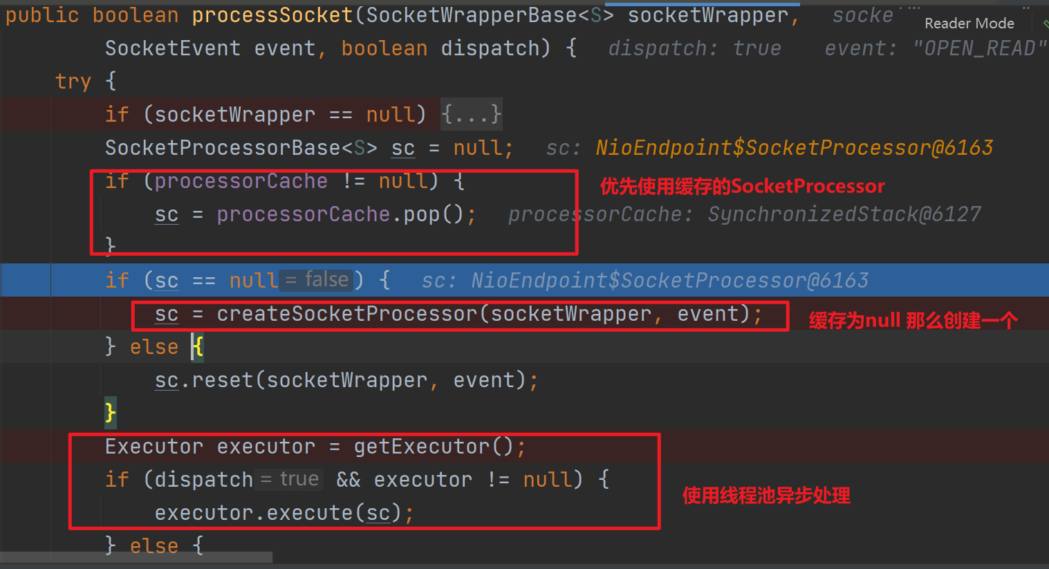 processKey會調用到processSocket,最終使用tomcat線程池中的線程進行異步處理