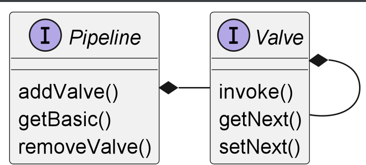 為了增強擴展性,tomcat定義了Pipeline(管道)和Valve(閥),Pipeline使用職責鏈的方式串聯多個Valve——來自客戶端的請求如同流水一樣流淌在管道中,受到每一個閥的作用。