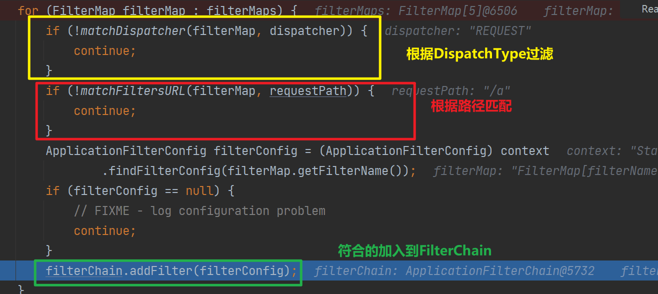 Filter的匹配主要通過DispatchType和Filter設置的路徑,
