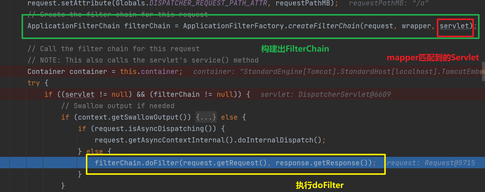 StandardWrapperValve:Wrapper對應的Valve,會負責組裝Servlet和Filter,并執行FilterChain#doFilter方法