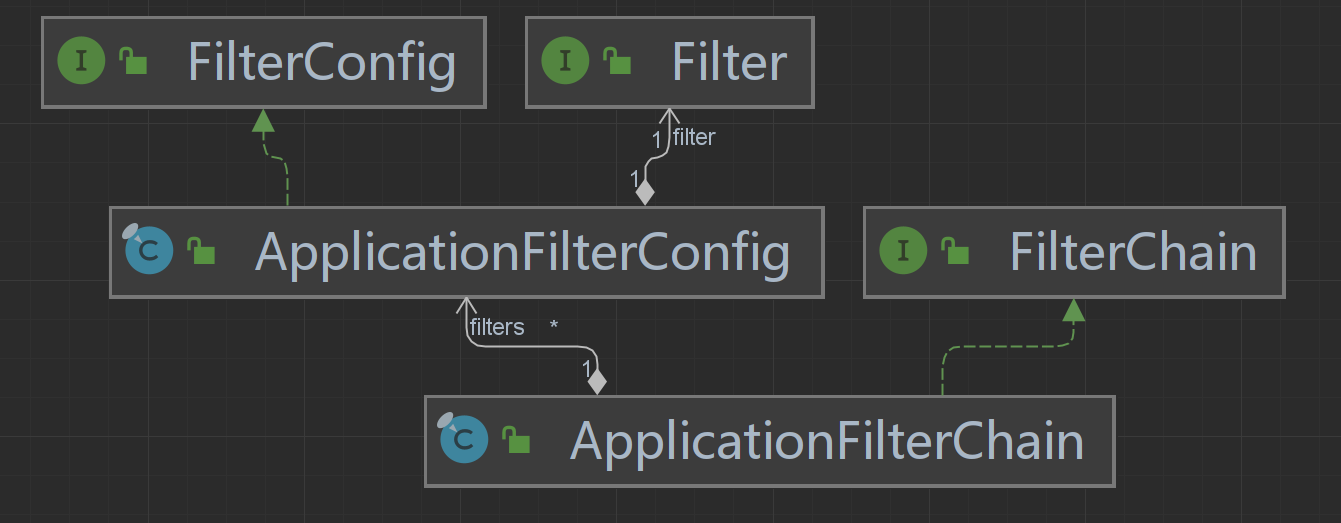 其中使用ApplicationFilterConfig是對FilterConfig的實現,內部持有一個Filter。