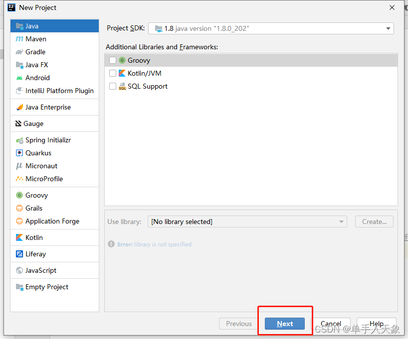 IDEA 創(chuàng)建項(xiàng)目,選擇 Java 項(xiàng)目,Next