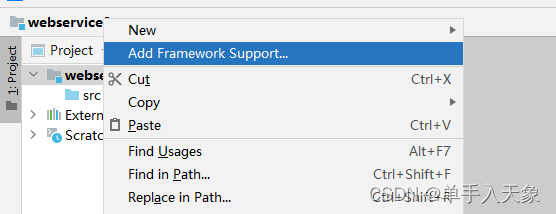 右鍵項(xiàng)目包名,選擇 Add Framework Support
