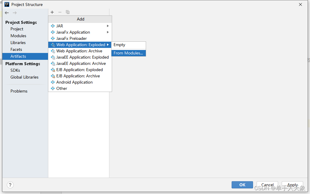 配置項(xiàng)目的 Artifacts,先選 Web Application Exploded
