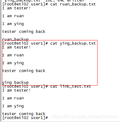 查看軟連接的內容和源文件內容一樣,接著編輯了軟連接后,查看軟連接和原測試文件