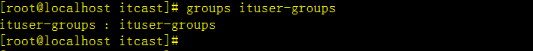 groups 用戶名查詢用戶ituser-groups屬于某個(gè)用戶組,執(zhí)行g(shù)roups命令