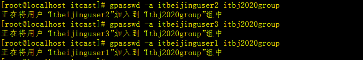 gpasswd -a itbeijinguser1 itbj2020groupgpasswd -a itbeijinguser2 itbj2020groupgpasswd -a itbeijinguser3 itbj2020group