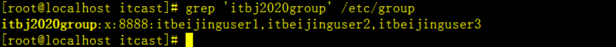 grep 'itbj2020group' /etc/group執(zhí)行效果如下(或者直接打開/etc/group文件都可以)
