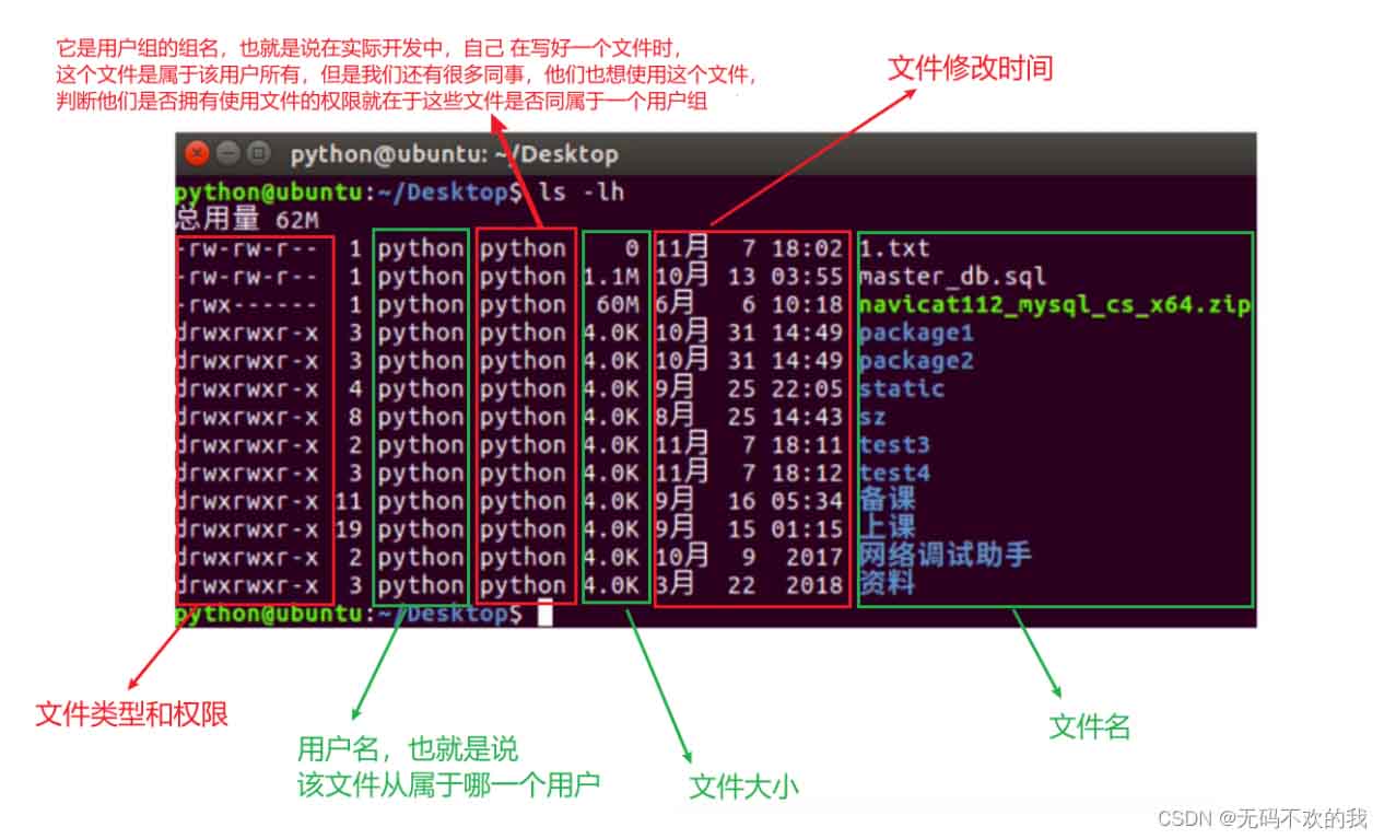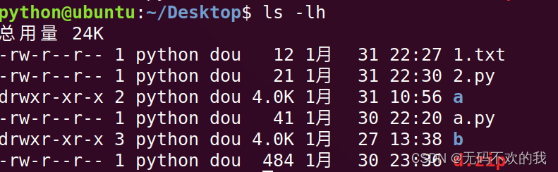 當(dāng)我們在終端中輸入ls-lh命令時,會出現(xiàn)如下界面