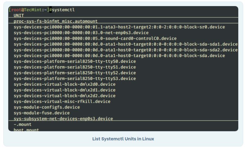 在 Linux 中列出 SystemD 下正在運(yùn)行的服務(wù)當(dāng)您運(yùn)行不帶任何參數(shù)的 systemctl 命令時,它將顯示所有加載的 systemd 單元的列表(閱讀 systemd 文檔以獲取有關(guān) systemd 單元的更多信息),包括服務(wù),顯示它們的狀態(tài)(無論是否處于活動狀態(tài))。