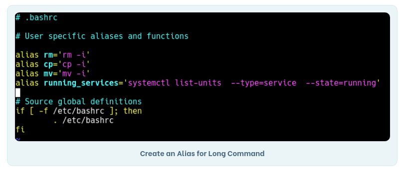 如果您經(jīng)常使用前面的命令,您可以如圖所示在 ~/.bashrc 文件中創(chuàng)建一個別名命令,以便輕松調(diào)用它。
