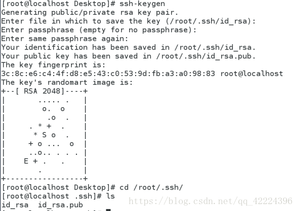 ? ?ssh-keygen 生成密鑰?? ?[kiosk@foundation60 Desktop]$ ssh-keygen ??? ?Generating public/private rsa key pair.?? ?Enter file in which to save the key (/home/kiosk/.ssh/id_rsa):?? 指定保存加密字符的文件(使用默認)?? ?Enter passphrase (empty for no passphrase):????????????????????? 指定設定密碼(使用空密碼)?? ?Enter same passphrase again:???????????????????????????????????? 確認密碼?? ?Your identification has been saved in /home/kiosk/.ssh/id_rsa.?? id_rsa:私鑰 也就是鑰匙?? ?Your public key has been saved in /home/kiosk/.ssh/id_rsa.pub.?? id_rsa.pub:公鑰 也就是鎖?? ?The key fingerprint is:?? ?d6:7b:b6:49:21:43:08:5f:e8:6c:17:c7:74:62:64:5a kiosk@foundation60.ilt.example.com?? ?The key's randomart image is:?? ?+--[ RSA 2048]----+?? ?|????? .? ..+E .? |?? ?|?????? o.o.=oo?? |?? ?|?????? oo oo???? |?? ?|??????? +o.????? |?? ?|?????? .S.+ .??? |?? ?|?????? .?? + .?? |?? ?|????????? . +??? |?? ?|?????????? + o?? |?? ?|??????????? o??? |?? ?+-----------------+(2)查看公鑰和私鑰