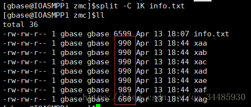 執(zhí)行split -C 1k info.txt 發(fā)現(xiàn)文件不是均分成1K但是文件的內(nèi)容是完整的,所以大家懂了吧