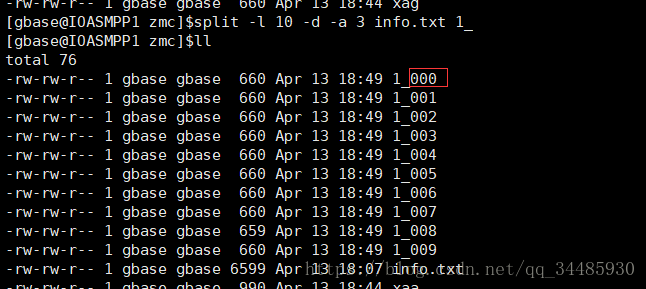執(zhí)行split -l 10 -d -a 3 info.txt 1_