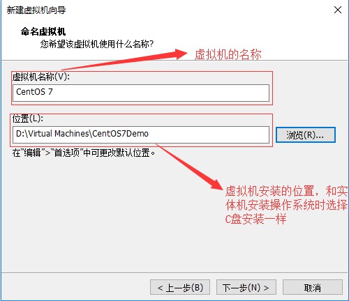 五、在命名虛擬機界面,設定虛擬機的名稱,選擇虛擬機文件安裝的位置,然后點擊“下一步”: