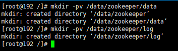 data:ZooKeeper使用的數據存儲目錄mkdir -pv /data/zookeeper/datalog:ZooKeeper使用的日志存儲目錄mkdir -pv /data/zookeeper/log