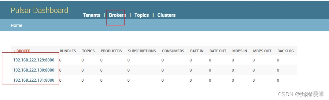 Pulsar自帶 Dashboard,可對broker、bookie、ZooKeeper 集群和topic等進行監控和統計。