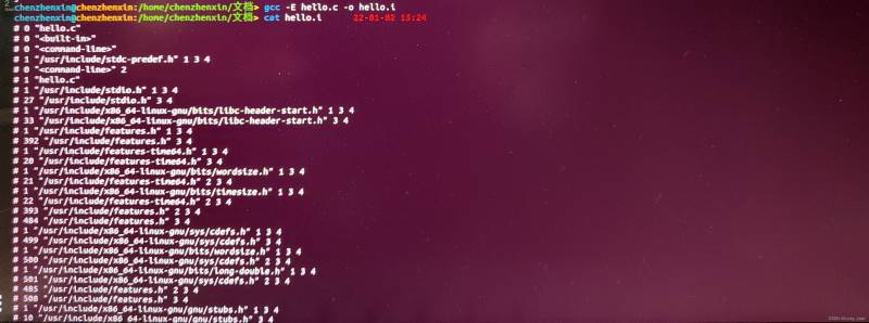 $ gcc -E (源文件名) -o (預(yù)處理文件名)