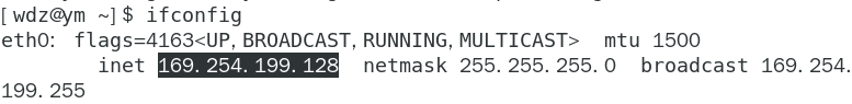 如果沒有填ipaddr,系統(tǒng)會默認(rèn)分配,ipaddr=169.254.199.128 ,這是DHCP分配的的。