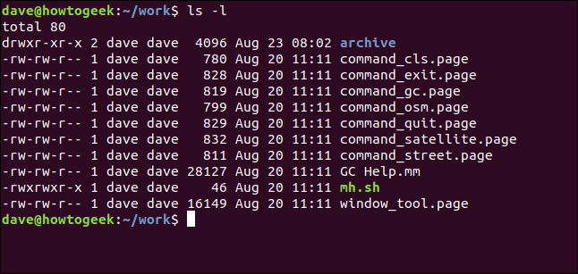 我們可以使用-l(長格式)選項來ls列出文件和目錄的文件權限。
