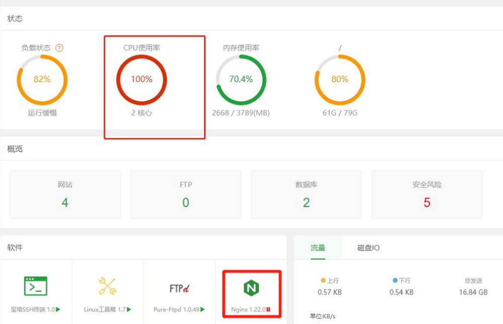 近期有一個朋友的服務器(自己做了網站)好像遭遇了入侵,具體現象是: 服務器 CPU 資源長期 100%,負載較高。 服務器上面的服務不能正常提供服務。