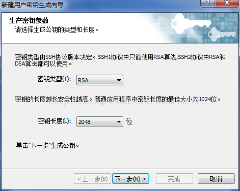 在Xshell里面生成也很簡單,只是需要幾個簡單的步驟,并且這里有兩種方法生成密鑰。一種是填寫密碼,另一種就是不需要填寫(與控制臺中的類似)。這里的生成步驟與剛才導(dǎo)入密鑰文件的界面是一樣的,只是這里要點(diǎn)擊“生成”,點(diǎn)擊下一步,下一步,如果不想填寫密碼,當(dāng)然也可以填寫密碼,那就直接下一步,點(diǎn)擊“確定”。這里要注意一下,把公鑰的類似亂碼的英文復(fù)制下來,在控制臺中找到密鑰對,選擇“導(dǎo)入已有密鑰對”,把剛才復(fù)制的內(nèi)容粘貼到這個黑黑的框里,給這個密鑰起一個名字,然后就可以了。
