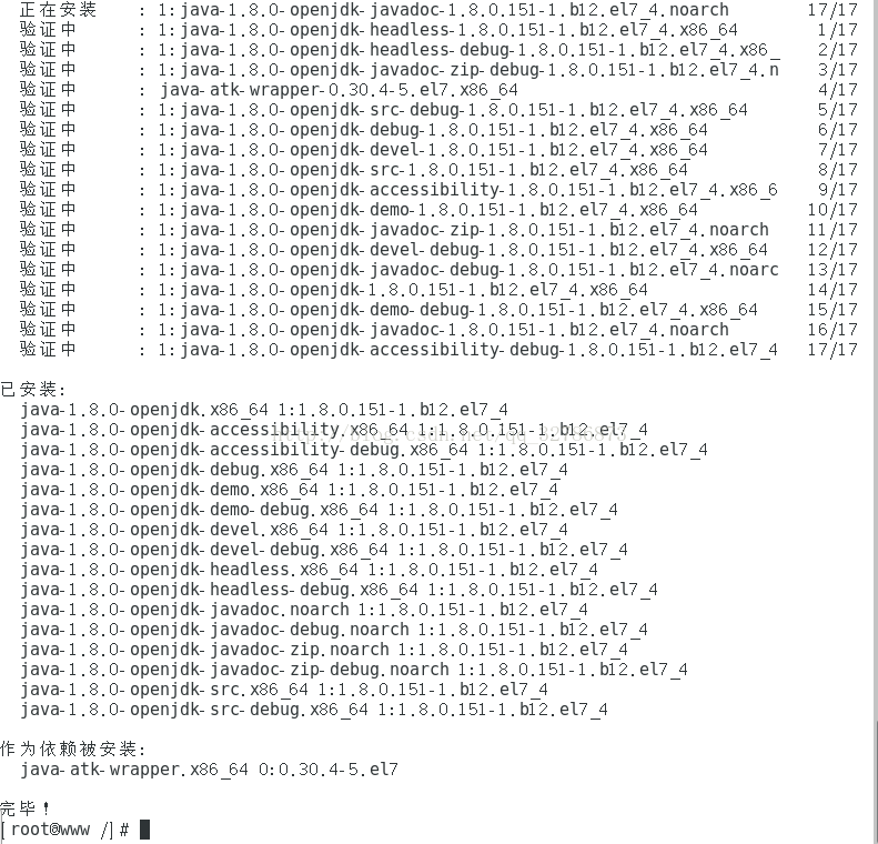 (安裝完之后,默認的安裝目錄是在: /usr/lib/jvm/java-1.8.0-openjdk-1.8.0.151-1.b12.el7_4.x86_64)