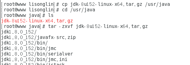3、解壓縮包:tar -zxvf jdk-8u152-linux-x64.tar.gz