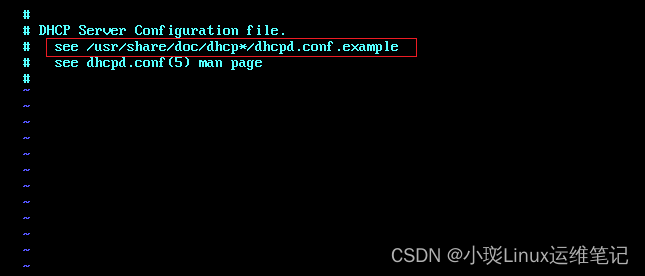 看到第二行 意思要去到這個文件下 把dhcp.conf.example復制到當前文件夾下并改名為dhcpd.conf