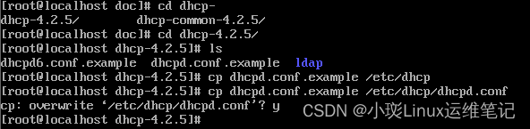 cd /usr/share/doc/dhcp-4.2.5cp dhcpd.conf.ecample /etc/dhcp/dhcpd.conf #接著會告訴你是否覆蓋 Y
