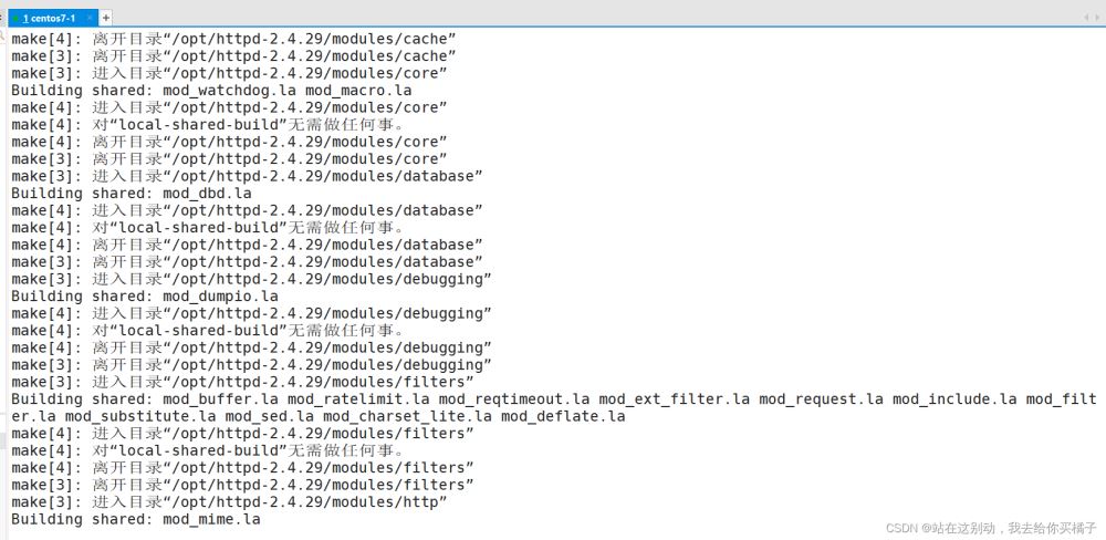 systemctl stop httpd.servicecd /usr/local/httpd/confmv httpd.conf httpd.conf.bak1 yum -y install gcc gcc-c++ pcre pcre-devel zlib-develcd /opt/httpd-2.4.29/./configure \--prefix=/usr/local/httpd \--enable-so \--enable-rewrite \--enable-charset-lite \--enable-cgi \--enable-deflate \--enable-expires make && make install