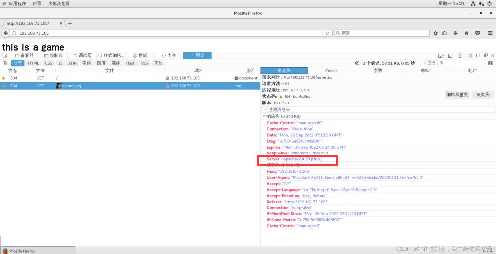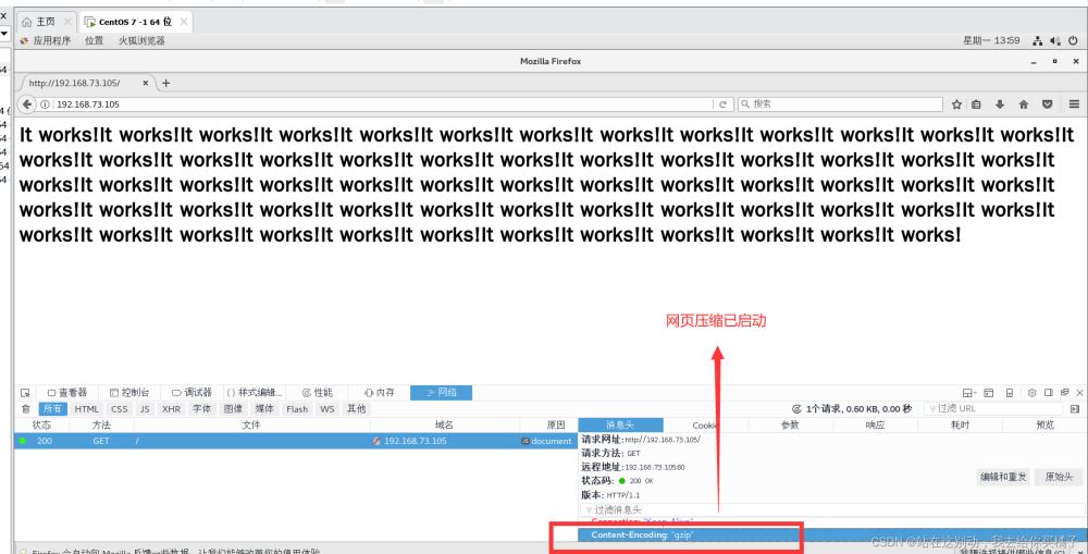 瀏覽器訪問 http://192.168.80.10 ,雙擊200響應消息查看是否存在 Content-Encoding: gzip
