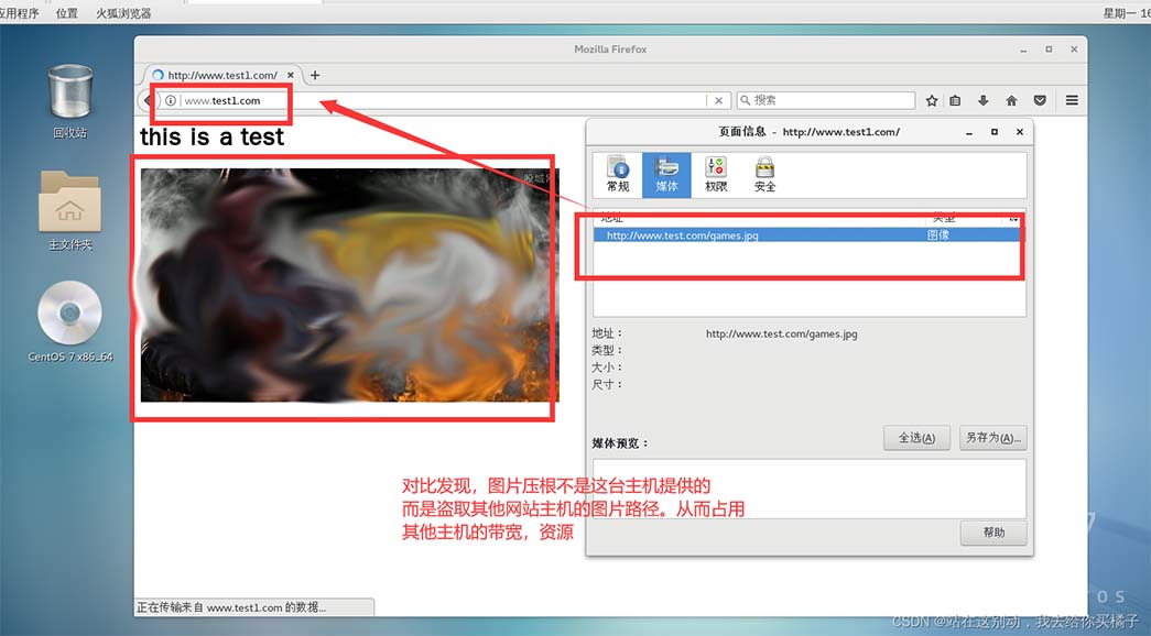 本實驗中我準備了兩臺虛擬機,一臺是源碼編譯安裝apche服務的主機,作為被盜鏈的主機,域名設置為www.test.com 另一臺為yum安裝apache服務的主機,作為盜鏈的主機,域名設置為www.test1.com
