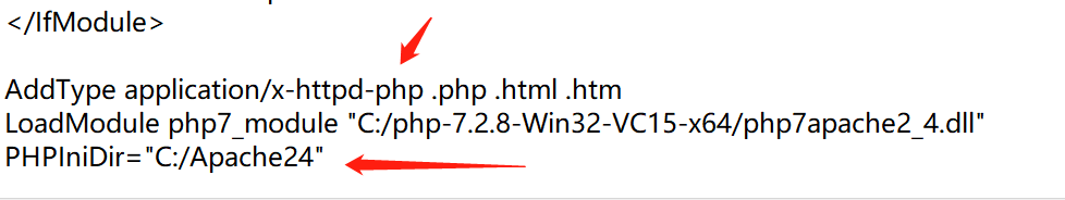 注意:PHPIniDir必須寫在LoadModule下面,否則會出現報錯!