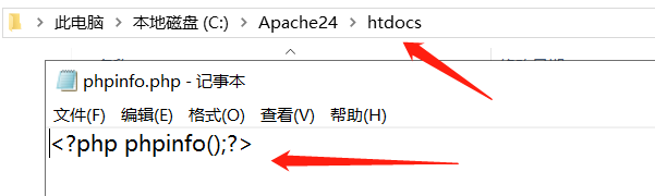 在htdocs文件夾中新建PHP文件phpinfo,并寫入內容: