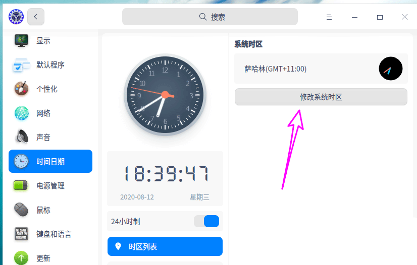 3、時間顯示不準確是時區沒設置好,這里點【修改系統時區】。