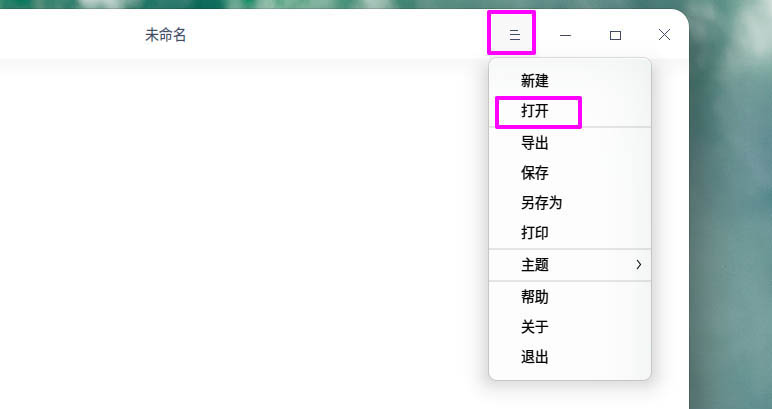 點右上角的下拉菜單按鈕,在下拉菜單中點【打開】。