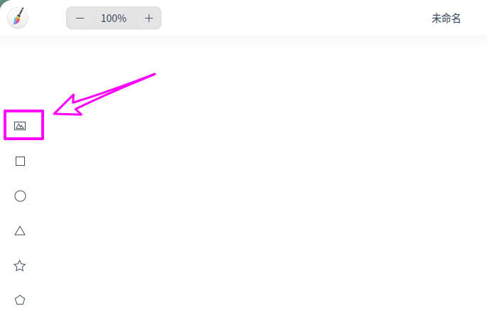 第一種方法:如下圖所示,點側(cè)邊欄的第一個工具圖標按鈕,即為打開圖片按鈕。