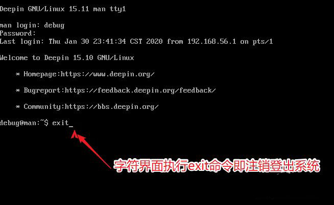 字符界面要注銷,只需要執(zhí)行exit命令即可。
