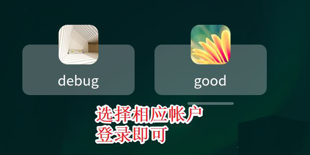 之后就進(jìn)入用戶選擇界面了,注銷和切換用戶兩個功能是一樣的,唯一的不一樣就是用戶界面的選項上。