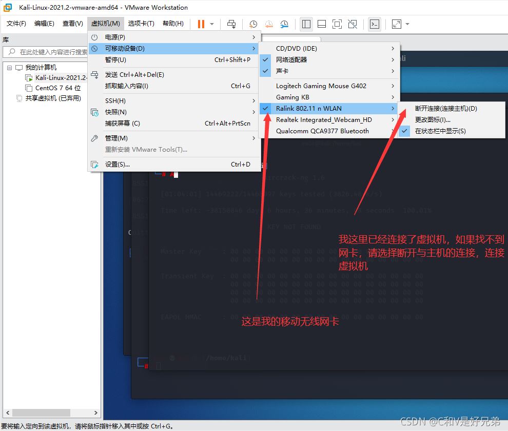 如果沒有,請注意是否開啟了網卡在虛擬機的連接,如下圖