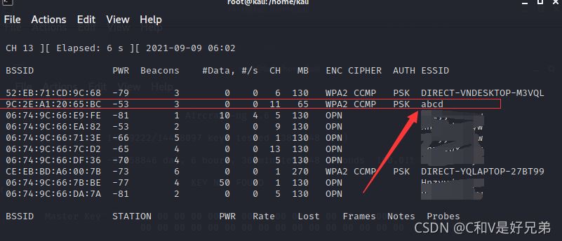 從這個界面可以看出,選定的wifi一共有一個人連接,沒有人連接的wifi是無法破解的