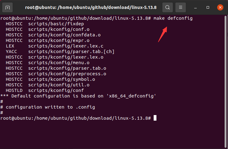 這里采用命令make defconfig使用默認的即可,如下圖所示: