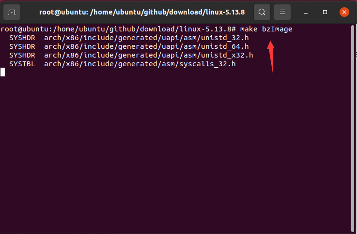 3、然后使用make bzImage命令編譯出內核即可,如下圖所示: