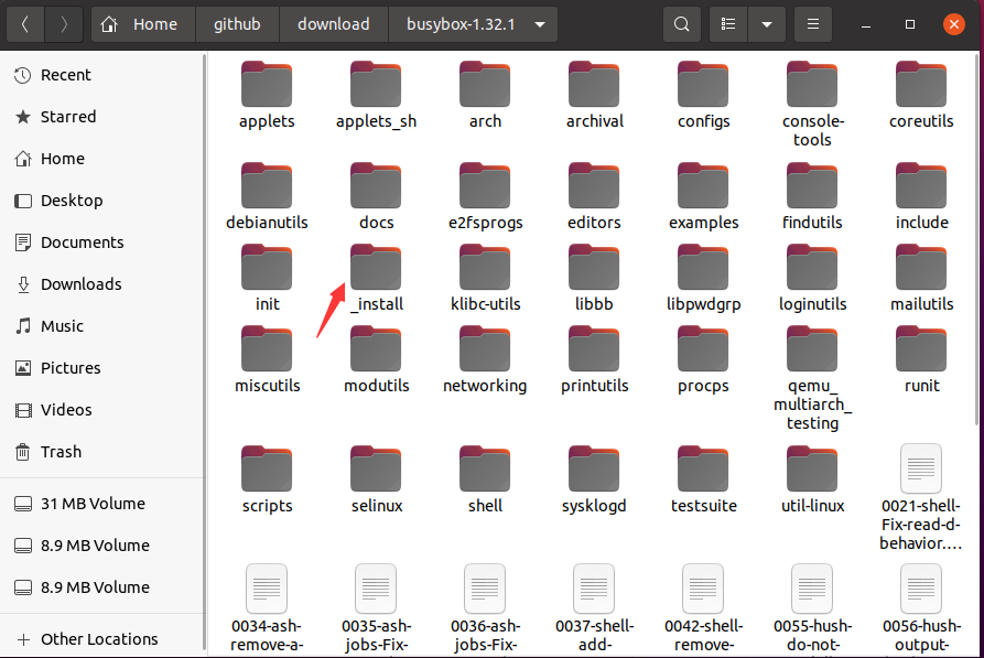 3、然后使用make busybox install命令編譯busybox,編譯好后會在當前目錄下面生產一個_install文件夾,如下圖所示: